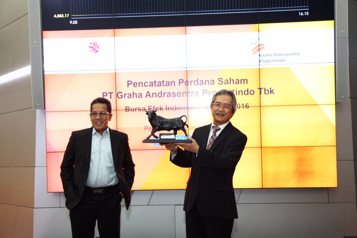 PT Graha Andrasentra propertindo Tbk (JGLE) meraih penghasilan usaha bersih sebesar Rp330,82 miliar di periode yang berakhir 31 Desember 2017 turun dari penghasilan usaha bersih Rp355,16 miliar di periode sama tahun sebelumnya.Laporan keuangan perseroan Selasa menyebutkan, beban pokok turun jadi Rp160,21 miliar dari Rp199,12 miliar dan laba kotor naik menjadi Rp170,60 miliar dari laba kotor Rp156,03 miliar tahun sebelumnya.